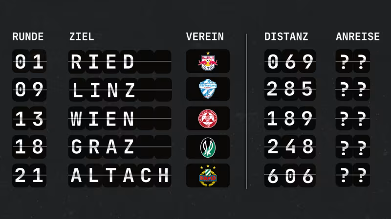 Das in mehrerlei Hinsicht ungünstigste Los hält der SCR Altach. Fast 12.000 Kilometer hatten die Vorarlberger über die ersten 22 Runden abzuspulen - die Mehrbelastung im Vergleich mit der Konkurrenz ist enorm.