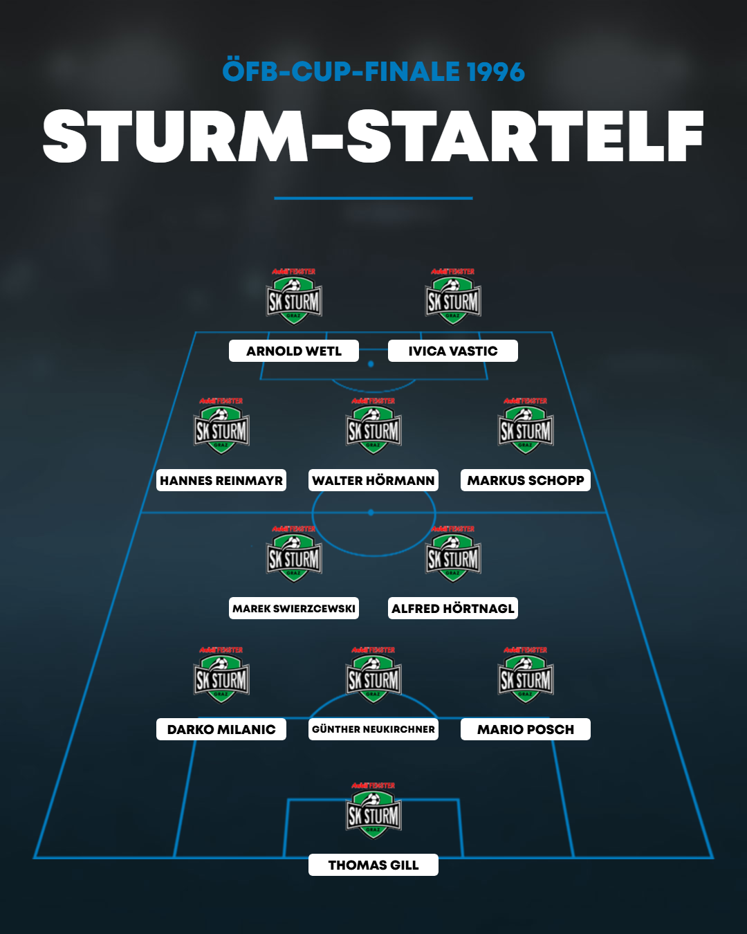 Es ist das ÖFB-Cup-Finale der Saison 1995/96 zwischen Sturm Graz und Admira Wacker. Die Südstädter drangen damals, auch dank günstiger Auslosung, bis ins Finale vor. Für beide ging es um viel: Die Admira hatte die Chance, erstmals nach 30 Jahren wieder einen Titel zu holen. Für Sturm ging es um den ersten Titel überhaupt.
